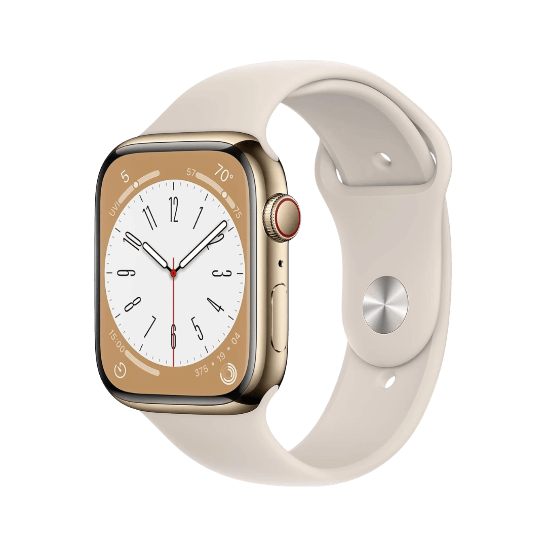 The Apple Watch Series 8 combines a sleek, modern design with durable materials, including aluminum and stainless steel options. Choose from a variety of colors and bands to personalize your watch, making it a perfect fit for your style.